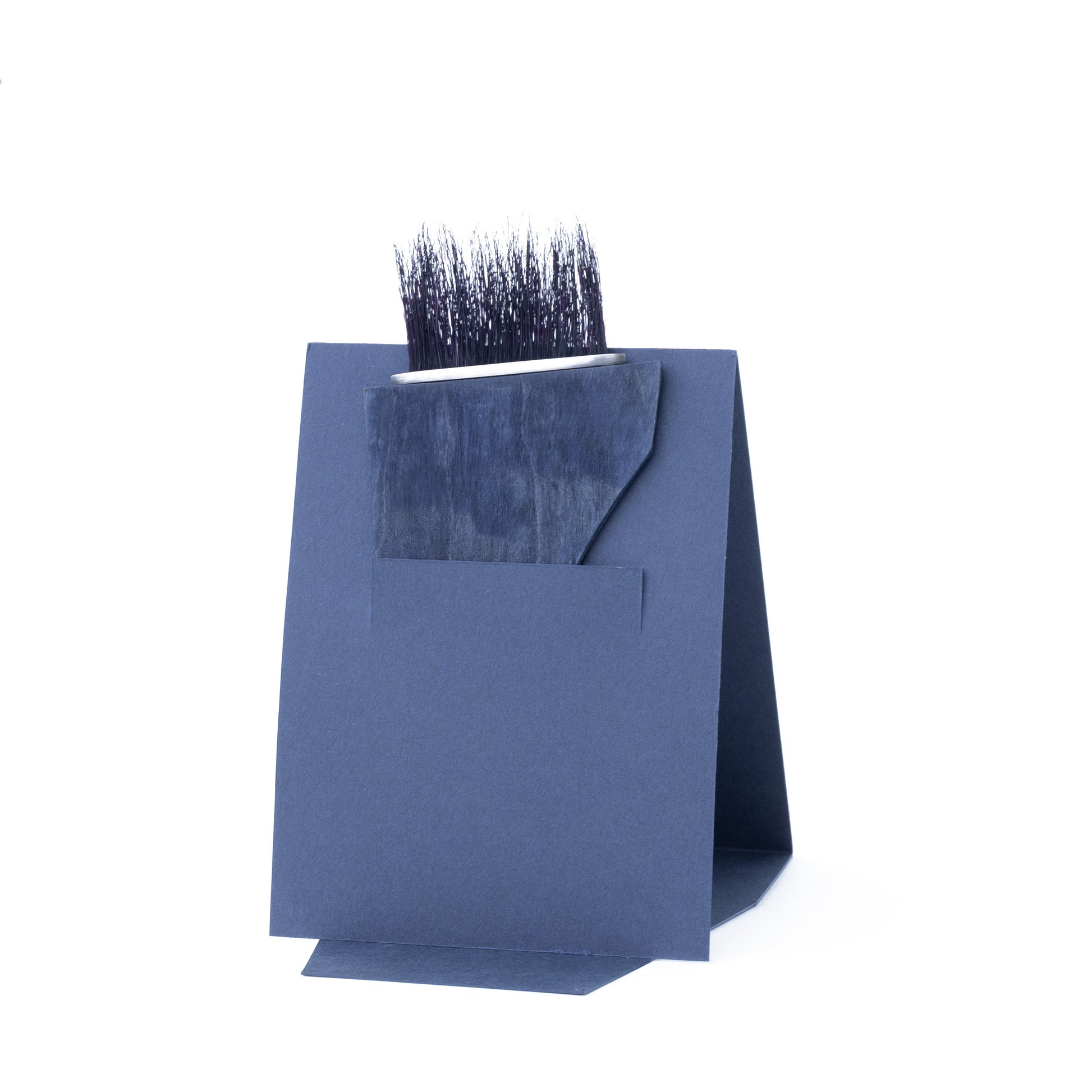 The pocket jewellery is made of plywood, chinese pig bristles, silver, paint